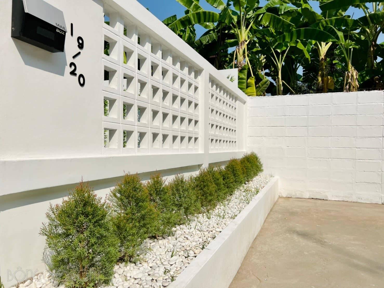 Gạch thông gió ô vuông 200x200mm làm tường rào nhà cấp 4